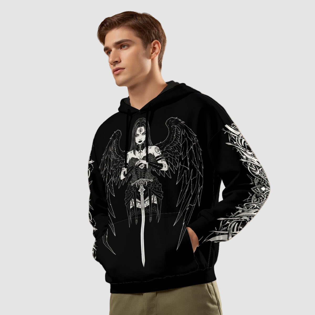 - Dlouhý rukáv, vzor smyčky uvnitř, se šňůrkou, kapsa vpředu